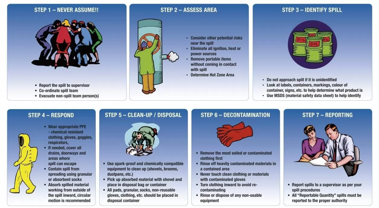 TPI has a spill kit that is located in the Z-room. This kit includes absorbent pads, absorbent sock (also known as absorbent booms or absorbent noodles), gloves, and disposable bags.
